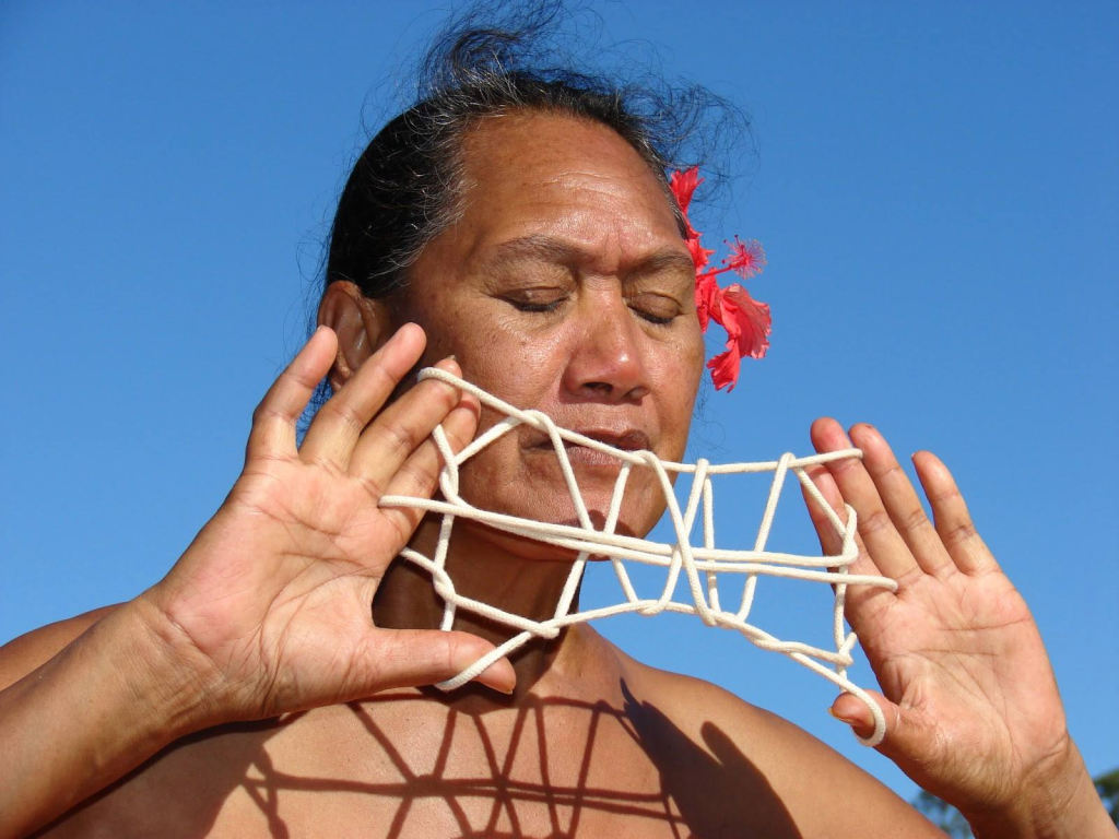 El Kai Kai es una de las expresiones más singulares del festival. A través de hilos entrelazados entre los dedos, los ancianos cuentan historias que relatan la creación del mundo, las migraciones, los dioses y la relación de los Rapa Nui con la naturaleza.