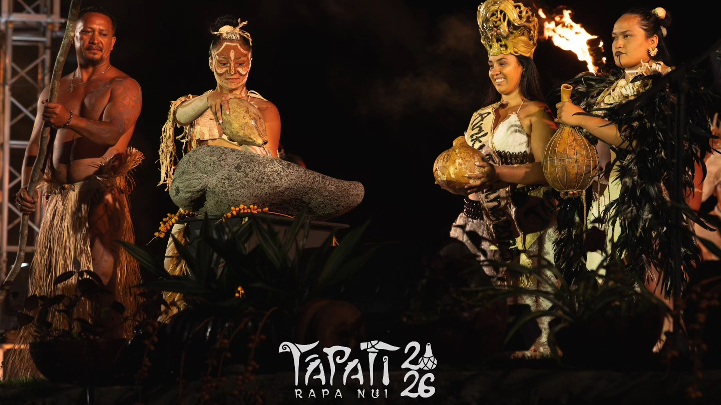 La noche inaugural de la Tapati Rapa Nui 2026, realizada en Haŋa Vare-Vare, marcó el inicio oficial del festival. En esta ceremonia se presentaron las candidatas a reina (Uka) de esta edición: Heremeta Teao Manutomatoma y Heilany Hito Rapu, acompañadas por autoridades, artistas, familias y comunidad en general.